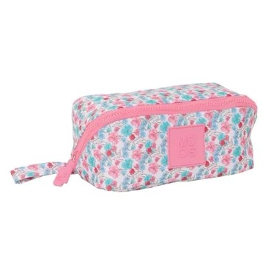 Safta Moos Flores Large Square Pencil Case for Kids, Ideal School Age, Comfortable and Versatile, Quality Resilience, 20 x 10 cm, Multicoloured, Estándar, Colourful, Casual