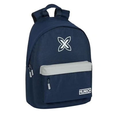 WARRANTY AND QUALITY: Official Munich Navy Backpack for laptop up to 14.1 inches with 2 years warranty UNIQUE DESIGN: Made of a very durable polyester material and smooth zippers. Easy to wash SPACIOUS & LIGHTWEIGHT: Inside pocket for iPad. Internal mobile phone pocket. Inner pocket for 10.6 and 14.1 inch laptop. Front zip pocket. Exterior back pocket with zip. Handles on the sliders for easy opening. Double pull on main zipper ERGONOMICS AND COMFORT: Padded back and shoulder pads, ergonomic, comfortable and adjustable. Reinforced top hand handle. Padded anti-sweat mesh RESISTANCE AND DURABILITY: This product is specially designed with durability in mind, made with high strength materials to ensure that it can be used in all kinds of activities, ensuring its functionality