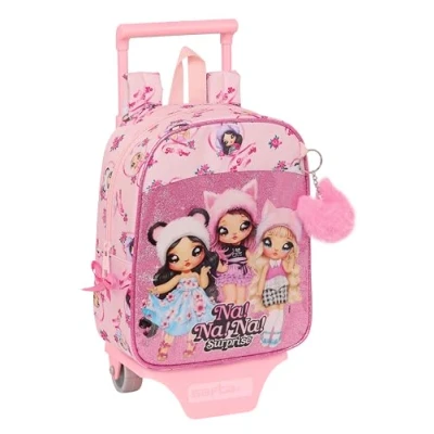 Safta NANANA Fabulous Nursery Backpack with Trolley, Ideal for Children of Different Ages, Comfortable and Versatile, Quality Resistance, 22 x 10 27 cm, Pink, Estándar, Casual