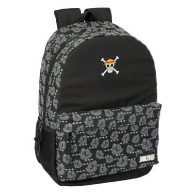 WARRANTY AND QUALITY: ONE PIECE PIRATES Official school backpack with 2 years warranty UNIQUE DESIGN: Made of a very durable polyester material and smooth zippers. Easy to wash SPACIOUS AND LIGHTWEIGHT: Side flap pockets. Large front zip pocket. Double pull on main zip. Handles on the sliders for easy opening. Reinforced seams Measurements: Width: 300 mm. Length: 140 mm. Height: 460 mm ERGONOMICS AND COMFORT: Padded back and shoulder pads, ergonomic, comfortable and adjustable. Hand handle on top. Adaptable to backpack carrier RESISTANCE AND DURABILITY: This product is specially designed with durability in mind, made with high strength materials to ensure that it can be used in all kinds of activities, ensuring its functionality
