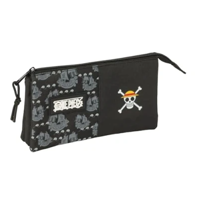 WARRANTY AND QUALITY: ONE PIECE PIRATES Official school pencil case with triple zip and 2 years warranty UNIQUE DESIGN: Made of a very durable polyester material and smooth zippers. Ultra-light case. Easy to wash SPACIOUS AND LIGHTWEIGHT: With 3 separate zippered compartments. Inside central zip pocket. Handles on the sliders for easy opening. Double pull on main zipper ALL AUDIENCES: Ideal for school use for both children and teenagers RESISTANCE AND DURABILITY: This product is specially designed with durability in mind, made with high strength materials to ensure that it can be used in all kinds of activities, ensuring its functionality