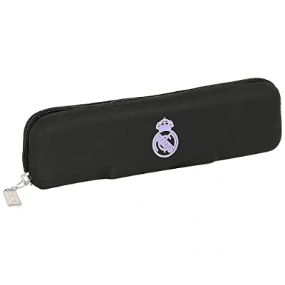 Safta Portatodo Estrecho Silicona Real Madrid 1ª Equipación 22/23, 200x20x55 mm, Unisex Kids’ Narrow Silicone Pencil Case Negra y blanca,