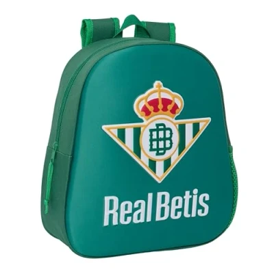 Safta Real Betis Balompié School Backpack, with 3D Design, Adaptable to Trolley, Ideal for Children of Different Ages, Comfortable and Versatile, Quality Resistance, 27 x 10 33 cm, Green,