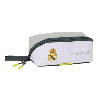 WARRANTY AND QUALITY: REAL MADRID EQUIPMENT 25/26 Official large capacity pencil case with 2 years warranty UNIQUE DESIGN: Made of a very durable polyester material and smooth zippers. Hand handle on the side SPACIOUS AND LIGHTWEIGHT: Diagonal zipper. Its square opening allows for colours and markers. Interior zip compartment ALL AUDIENCES: Great for kids, adults and teens RESISTANCE AND DURABILITY: This product is specially designed with durability in mind, made with high strength materials to ensure that it can be used in all kinds of activities, ensuring its functionality