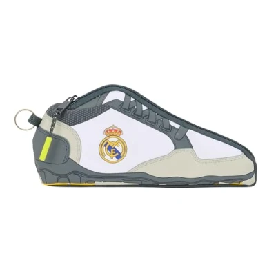 WARRANTY AND QUALITY: Real Madrid Team 25/26 Official multi-purpose case shaped like a football shoe. 2 years warranty UNIQUE DESIGN: Made of a very durable polyester material and smooth zippers. Easy to wash SPACIOUS AND LIGHTWEIGHT: Pull on the cursor for easy opening. Reinforced seams Football boot shape. One zipped compartment. Metal ring for hanging on the backpack ALL AUDIENCES: Great for kids, adults and teens RESISTANCE AND DURABILITY: This product is specially designed with durability in mind, made with high strength materials to ensure that it can be used in all kinds of activities, ensuring its functionality