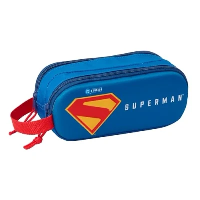 WARRANTY AND QUALITY: SUPERMAN 3D Official double pencil case in 3D format with 2 years warranty UNIQUE DESIGN: Hand handle on the side SPACIOUS AND LIGHTWEIGHT: Two separate compartments with zippers ALL AUDIENCES: Great for kids, adults and teens RESISTANCE AND DURABILITY: This product is specially designed with durability in mind, made with high strength materials to ensure that it can be used in all kinds of activities, ensuring its functionality