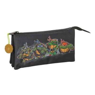 WARRANTY AND QUALITY: Ninja Turtles Official school pencil case with triple zip and 2 years warranty UNIQUE DESIGN: Made of a very durable polyester material and smooth zippers. Ultra-light case. Easy to wash SPACIOUS AND LIGHTWEIGHT: With 3 separate zippered compartments. Inside central zip pocket. Handles on the sliders for easy opening. Double pull on main zipper ALL AUDIENCES: Ideal for school use for both children and teenagers RESISTANCE AND DURABILITY: This product is specially designed with durability in mind, made with high strength materials to ensure that it can be used in all kinds of activities, ensuring its functionality