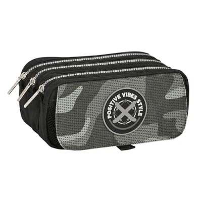 Safta Triple Big Pencil Case, Children's Ideal for School Age Children, Comfortable and Versatile, Quality Resistance, 21.5 x 8 10 cm, Black, Black/White, Estándar, Casual
