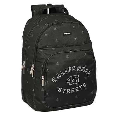 Warranty and quality: safta California official school backpack adaptable to trolley with 2 year warranty Unique design: made of very durable polyester material and soft zips. Easy to wash SPACIOUS & LIGHTWEIGHT: Double front pocket with interior organizer. Side pocket for bottles. Handles on the zipper pullers for easy opening. Reinforced seams ERGONOMIC AND COMFORT: Padded, ergonomic, comfortable and adjustable back and shoulder pads. Top handle. Lightweight backpack. Scratch resistant rubber corners on both sides for increased durability (patented by Safta) RESISTANCE AND DURABILITY This product has been specially designed with its durability in mind, made of high strength materials to ensure that it can be used in all types of activities to ensure its functionality