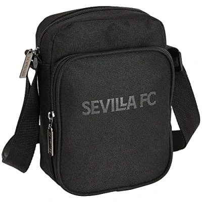 SAFTA Unisex Kid's Outdoor Crossbody, 160x60x220 Mm Sevilla FC Teen Shoulder Bag with Exterior Pocket 160x60x220mm, Black, Estándar