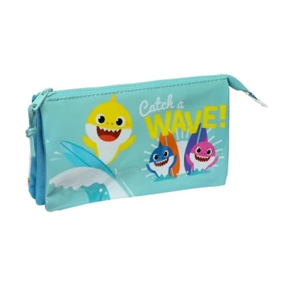 Guarantee and quality: Baby Shark Surfing, official school pencil case with three zips Unique design: made of very durable polyester material and soft zips. Ultra-light case. Easy to wash SPACIOUS & LIGHTWEIGHT: With 3 separate zippered compartments. Interior zip pocket. Handles on the sliders for easy opening. Double zip All publics: ideal for school use for children and teenagers RESISTANCE AND DURABILITY This product has been specially designed with its durability in mind, made of high strength materials to ensure that it can be used in all types of activities to ensure its functionality
