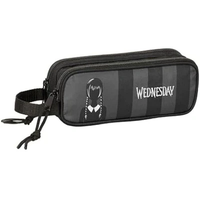 Safta Wednesday Children's Double Pencil Case, Ideal for School Children, Comfortable and Versatile, Quality Resistance, 21 x 6 8 cm, Black, Black/White, Estándar,