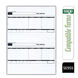 Pre-printed payslip forms for Sage payroll software. Designed for use with Sage accounting software. Reduced background shading for crystal clear photocopies. Two A5 payslips per A4 sheet. Designed for laser and inkjet printers.