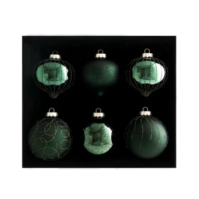 Sage Green baubles to make your tree stand out this year 6 pack of onion and traditional baubles in matt and shiny finishes Different designs with glitter and mottled effects Traditional Bauble: 10 cm Onion Bauble: 10 cm