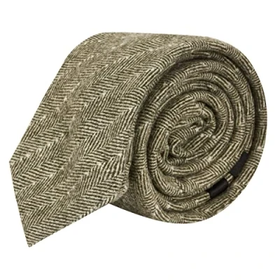 Sage green herringbone fabric with pinstripe Tie measures approximately 7cm at its widest point Forms part of the King & Priory Herringbone Collection Matching waistcoat, pocket square and bow tie also available