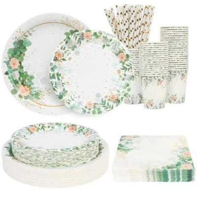 25 Guests Sage Green Party Plates Set: Include 25pcs x 9''green paper plates+25pcs x 7'' side paper plates+25pcs 9oz paper cups+25pcs sage green napkin serviettes+25pcs white and gold straws. Totaling 125PCS. Premium Party Tableware Set: The paper plates, cups, straws, napkins are made of high quality material, which safe for both kids and adults. Warm Note: Please don't microwave the plates and cups. Unique Design: Thia sage green party tableware design with white base, embellished with green sage and gold polka dots, leaves pattern. This elegant and fresh design will make every guest's eyes shine and leave a good impression. For All Occasion: The green paper plates cups straws napkins set are neutral for any kinds of occasion: such using as baby shower party supplies set, wedding party supplies, engagement, bridal, safari jungle theme party, birthday party, tropical Party, home Dinners and etc. Convenient and Easy Clean-Up after Party: You can easily dispose of them after the party. Save more time and energy while adding a nice atmosphere to your party!, Weight: 1.10231131 pounds, Manufacturer: CEILIWEN