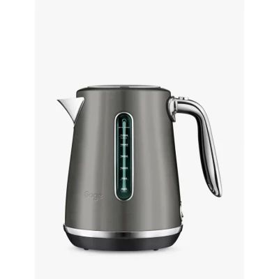 #html-body [data-pb-style=DFHUDNX]{justify-content:flex-start;display:flex;flex-direction:column;background-position:left top;background-size:cover;background-repeat:no-repeat;background-attachment:scroll}Sage SKE735BST4GUK1 Luxe Kettle Black Stainless Steel Soft open lid that slowly releases steam The Soft Top™ Luxe includes a soft open lid to stagger hot steam and prevent hot water splash back. Constructed with brushed stainless steel in premium metallic finishes and chrome accents using BPA Free materials. Soft Top™ lid A bubbling brew presents a few hazards on the way from kettle to cup. This specialised lid gently releases steam and eliminates splashing. Dual water windows Made from BPA Free materials. Luxe design Ergonomically designed, full stainless steel handle with illuminated power switch. Luxe collection Meet your match with the Creatista, the Bakery Boss™, the Toast Select™ Luxe. Cordless convenience Cordless Jug with 360 degree multi directional base with cord storage wrap.