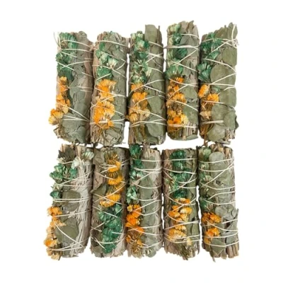 Sage Smudge Stick 4" (White Sage, Orange, Green Sinuata and Eucalyptus 4"), Pack of 10