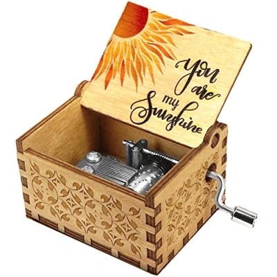 【High Quality Material,Equipped Good Music Movement】The music box is made of good boxwood,Environmental protection material,No bad smell.It equips more stable and durable music movement. 【No Batteries required,Easy to Use】Open the lid,Turn the handle and it will play a well-known “You are my sunshine” melody, You can control the rhythm speed by yourslef. Any people can play it,including Kids. 【Meaningful Gift to Anybody】It is with Exquisite Workmanship.There are very beautiful patterns on the surface of music box.They are carved by laser.It will be the nice gift to your son,daughter,wift,husband,friends on Valentine’s Day,Birthday,Anniversary Christmas day and New Year. 【Exquisite design,Easy to carry】The music box size is 2.56"×1.97"×1.5"(6.5cm×5cm×3.8cm) you can put it in your Palm or Pocket,Lightweigth and portable,Easy to Carry. 【Good and Timely After-sale Service】We provide 12 months’ Warranty for all our products.When you meet any problems,please contact us.We will reply you within 12 hours and provide you satisfied solution.