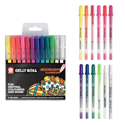 SAKURA Gelly Roll Moonlight Fluorescent Gel Pen Set of 12 Colors Pens for Writing, Drawing, Journaling & Crafts