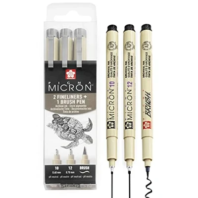 SAKURA Pigma Micron Pigment Fineliner Pens Black Ink Wallet Sets (Mixed x 3, Black)