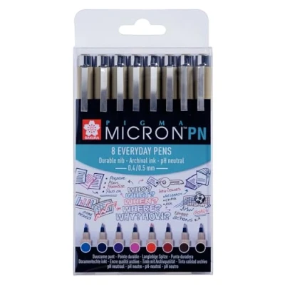 SAKURA Pigma Micron PN Set 8 Colours High Quality Pigment Ink Pens for Drawing, Journaling & Writing