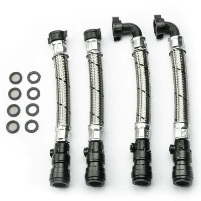 Salamander anti-vibration 22mm flexi hose set. Contains: 2 x straight 2 x angled 22mm push fit to copper Genuine brand new Salamander product, covered by a Salamander manufacturer's guarantee.
