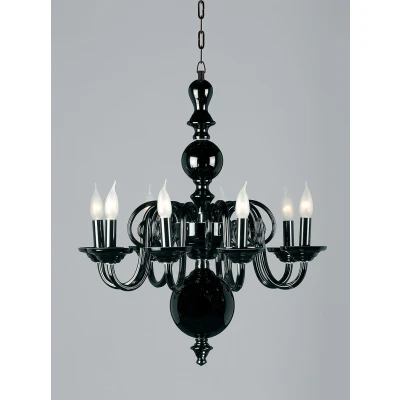 Add instant glamour to a space with the unexpected Salas Black Glass 8-Arm Chandelier. This candelabra style fixture is made unique with a glossy black finish to make a statement in a foyer or dining room. Perfect for coordinating with many existing colours this chandelier is a bold choice for drama and interest.