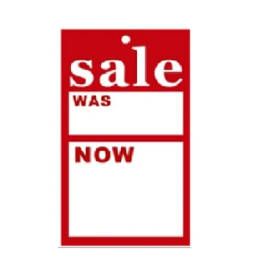 Sale Hanger Tickets MEDIUM - 9.5cm L x 5.5cm W Rectangle Ticket/MEDIUM Tickets Tagging Gun Hanger Swing Tickets Sale Hanger Ticket in Red 100 – 1000 PCS OF Tickets per pack Perfect to use in any supermarket, food store, chemist, spa or farm shop and more. Unstrung ticket with punch hole in top centre. Ideal for use with tagging guns and coat hangers. The bright red colour of these quality tickets attracts more attention to your sales items.