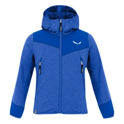 Salewa Agner Melange Polarlite Full Zip Kids' Hooded Fleece Jacket, Blue, 128