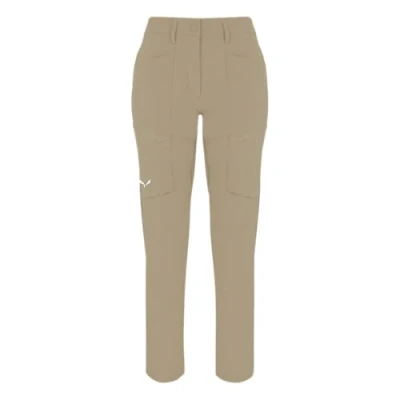 A breathable and abrasion-resistant Durastretch softshell trousers for women for trekking tours in the mountains on warmer days.