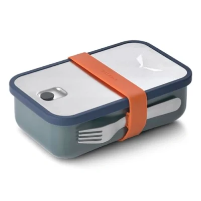 A stylish, leak-proof lunch box made of stainless steel for mountain hikes or for the office. Dishwasher-safe and microwave-safe. Supplied with an adjustable internal divider and fork Microwave safe (without lid, fork and internal divider) Corrosion resistant --- ---