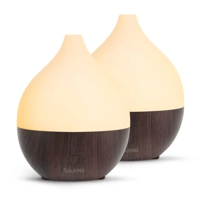SALKING Essential Oil Diffuser (Set of 2 Dark), 100ml Small Aromatherapy Diffuser, Ultrasonic Diffusers for Oils, Cool Mist Humidifier with Warm White Lights, Auto Shut Off, Office Home