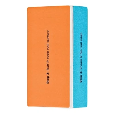 Side 1: Give shape and file The product is made in USA Side 2: Smoothing and removing irregularities Use the white side to shine to a brilliant finish. Perfect: even nail surface with 'buff' side use the 'shine' side for a natural, brilliant finish Side 2: Sand and remove irregularities Evens nail surface