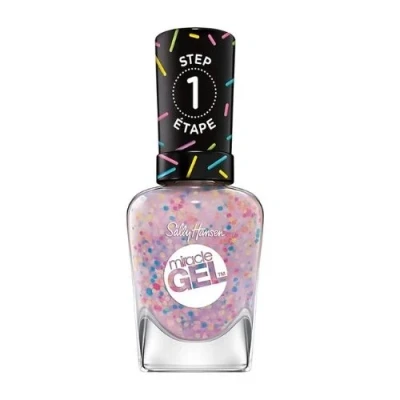 Add a playful touch to your next manicure with this Sally Hansen Miracle Gel Nail Polish in Sprinkle & Spice 164. This long lasting nail varnish provides a salon quality gel-like finish - with no UV lamp required!. The nourishing formula will ensure that your nails remain moisturised and strong. This 1 step gel polish offers a bright colour combination of light pink with fun blue, pink and yellow sprinkles that are sure to make your nails pop.. 1 x Sally Hansen Miracle Gel Nail Polish. 164 Sprinkle & Spice. Long wearing and chip resistant. Up to 14 days of colour and shine. No need for base coat or top coat