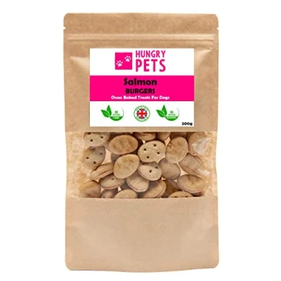 Delectable Salmon Flavor: Hungry Pets Salmon Burgers Dog Treats offer a delectable and savory salmon flavor that dogs find irresistible. Premium Quality Ingredients: These treats are made with high-quality salmon, ensuring a nutritious and flavorful snacking option for your furry friend. Bite-Sized Delights: The salmon burgers are conveniently sized, making them perfect for training, rewarding, or simply as a tasty snack for your dog. Omega-3 Fatty Acids: Salmon is a great source of omega-3 fatty acids, which can contribute to your dog's skin, coat, and overall well-being. Trusted Brand: Hungry Pets is a reputable brand known for their commitment to quality and the happiness of dogs, making their Salmon Burgers a reliable choice for dog owners.