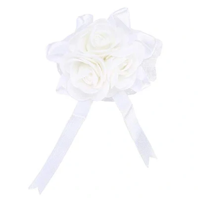 Salmue Hand Flower,Ribbon Rhinestone Stretch Bracelet Wedding Prom Wrist Corsage for Wedding, Prom, Party(White)