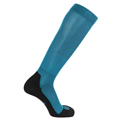 Warm and comfortable high socks, unisex, optimum for skiing and snowboarding Sizes L, for shoe sizes 5.5-7, anatomical design to fit the bone structure of the foot, elastic arch support Resistex Copper technology that eliminates microbes and odours, energy return, precise fit, does not move inside footwear Dryarn technology for moisture management and warm feet, sweat elimination, machine washable (30 degree Celsius) Contents: 1 x Salomon 1 Pair of unisex High Running Socks, QST Model, Polypropylene/Polyamide, Size M (5.5-7), Lyons Blue/Fjord Blue, LC1247700