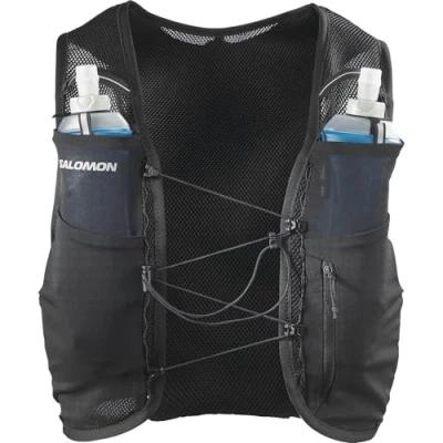ADV Hydra Vest offers the combined benefits of easy hydration and maximum freedom of movement Includes 2, easy to reach, 500ml soft flasks and a safe pocket to store and quickly access your essential belongings Offers extra stable comfort, thanks to its fabrics that adapt to your body and easy elastic closure The sternum straps allow for a quick adjustment of the vest and for easy breathing while ensuring the vest conforms confortably to the chest Compatible with Salomon 1,5L Bladder
