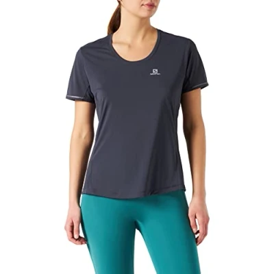 Women's short sleeved t-shirt for road running and other outdoor sports (summer) Lightweight and breathable short sleeved t-shirt, warp knit, warm and dry for more comfort even in cold weather Enhanced performance features for the ideal all round running shirt Better visibility and safety for day or night running thanks to 360 degree reflective detailing Content: 1 x Salomon women's short sleeved sport t-shirt, agile SS Tee W, fabric: Synthetic blend, colour: Graphite, size: M, L40124400