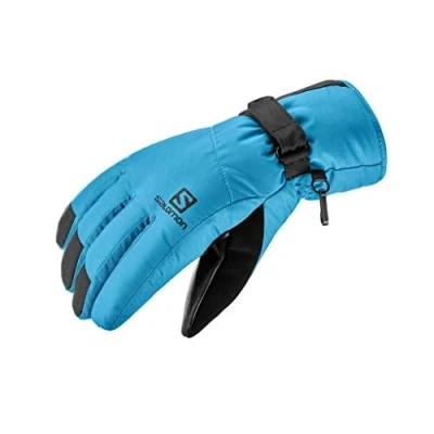 Pair of unisex running/hiking gloves to protect the hands from the cold whilst out in the mountains or during snow season Waterproof gloves to protect the hands against the cold AdvancedSkin Warm and AdvancedSkin Dry technology for a better temperature regulation and protection against rain and bad weather whilst allowing humidity to escape Heat indicator of 2/5 and waterproof of 1/5, buckle in faux leather for more comfort and flexibility of movement Contains: 1 x Gloves for men Force Dry M, SALOMON, material: Polyamide/Polyester, size: S, dimensions: 20 x 10 x 8 cm, weight: 185 g, colour: Fjord Blue/Black, LC1182700