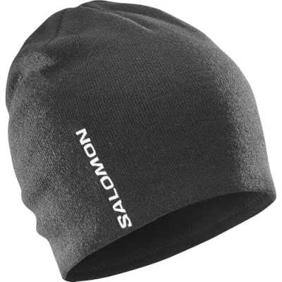 Salomon Graphic Beanie, Warm Running Cap for Hiking, Trail Running, Outdoor Sports Unisex, Deep Black, one Size fits All