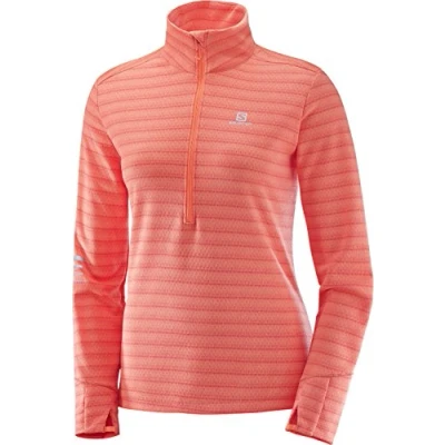 Salomon Women's Long Sleeved Sport T Shirt, Lightning HZ, Synthetic blend, Coral, Large