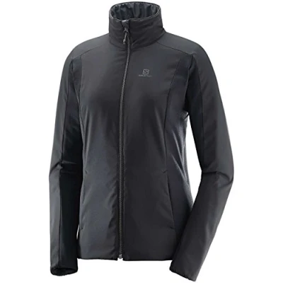 Versatile reversible sports jacket with hood to adapt to the temperature and style of each occasion Shiny side out for warmth and windbreak protection, elastic side out for a casual look and lower level of warmth AdvancedSkin Warm fabric and PrimaLoft insulation to protect against cold and moisture Lightweight and foldable into backpack, hood, full zip, side pockets, elastic cuffs and waist Contents: 1 x Salomon Women's Reversible Jacket, Drifter Mid JKT W, material: Synthetic blend, colour: Black, size: L, L39744800