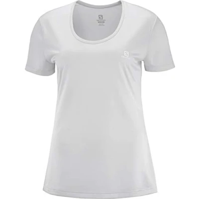 Women's short sleeved T-shirt for road running and other outdoor sports (Summer), Active cut Lightweight and breathable short sleeved T-shirt, Warp knit, Warm and dry for more comfort even in cold weather Advanced Skin Active Dry technology for fast drying, Enhanced performance characteristics for the perfect running t-shirt Better visibility and safety for day or night running thanks to 360 Degree reflective detailing Contents: 1 x Salomon short sleeved t-shirt, For Women, AGILE SS TEE W, Polyester, Colour: Light grey, Size: S, LC1280300