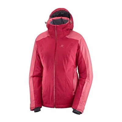 Salomon Women'S Ski Jacket with Hood, Brilliant JKT W, Synthetic Blend, Red/Pink (Rio Red/Garnet Rose), Size L, LC1210400