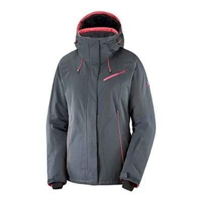 Salomon Women'S Ski Jacket with Hood, Fantasy JKT W, Synthetic Blend, Grey (Ebony), Size S, LC1226700