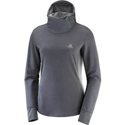Salomon Women'S Sports Sweatshirt, Agile LS Hoodie W, Polyester, Dark Grey (Ebony/Heather), Size XL, LC1158500