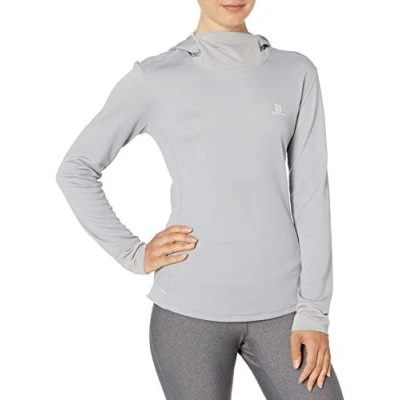 Salomon Women'S Sports Sweatshirt, Agile LS Hoodie W, Polyester, Grey (Alloy/Heather), Size S, LC1158600