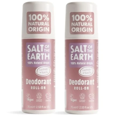 Salt of the Earth 2 Pack Natural Roll On Deodorant Bundle (2 x 75ml) Effective Protection, 100% Origin Ingredients, Vegan Unisex On, Made in UK Lavender and Vanilla